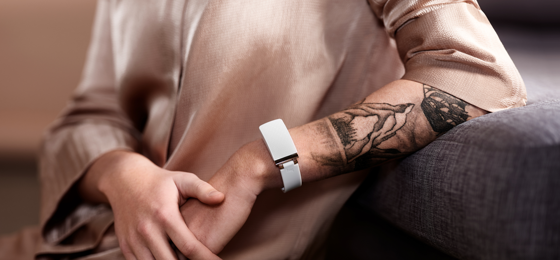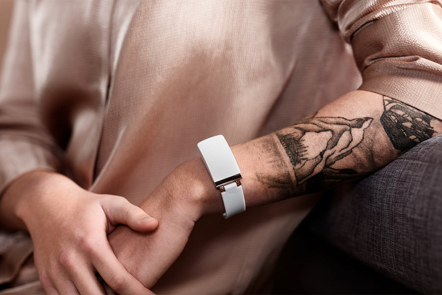 Hey uses a clever layout of sensors to detect when you touch your bracelet. This touch is sent via Bluetooth to your smartphone and the Hey app, which then sends the touch to the other connected phone and Hey bracelet via the Internet. Hey uses a small but powerful motor to pull part of the wristband into the casing, producing a gentle squeeze.